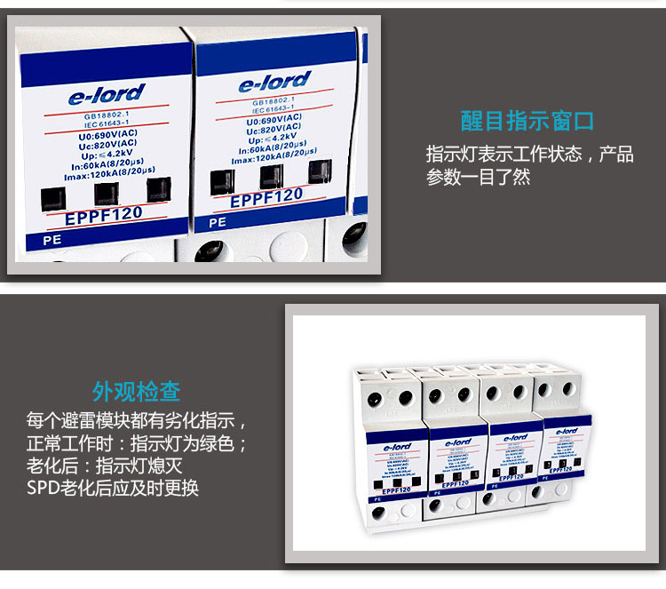 EPPF系列風能電源SPD是由多個單片式限壓單元組成,廣泛應用于風能690V交流發電系統中,對風能發電機,匯流箱、配電柜及送變器等系統配套設備進行雷電感應浪涌防護,能有效防止由雷電感應波和線路浪涌沖擊所造成的設備損壞,最大程度的保證了風能發電系統的穩定性和可靠性,保護風能發電系統穩定可靠地運行。